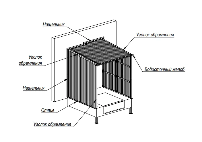 При заказе перегрузочного тамбура ALUTECH DH с обшивкой профилированным листом или сэндвич-панелью в стандартный комплект поставки входят нащельники примыкания к стене, отливы по бокам площадки, уголки обрамления стыков крыши и стен. Эти элементы надежно защищают от сквозняков и осадков.